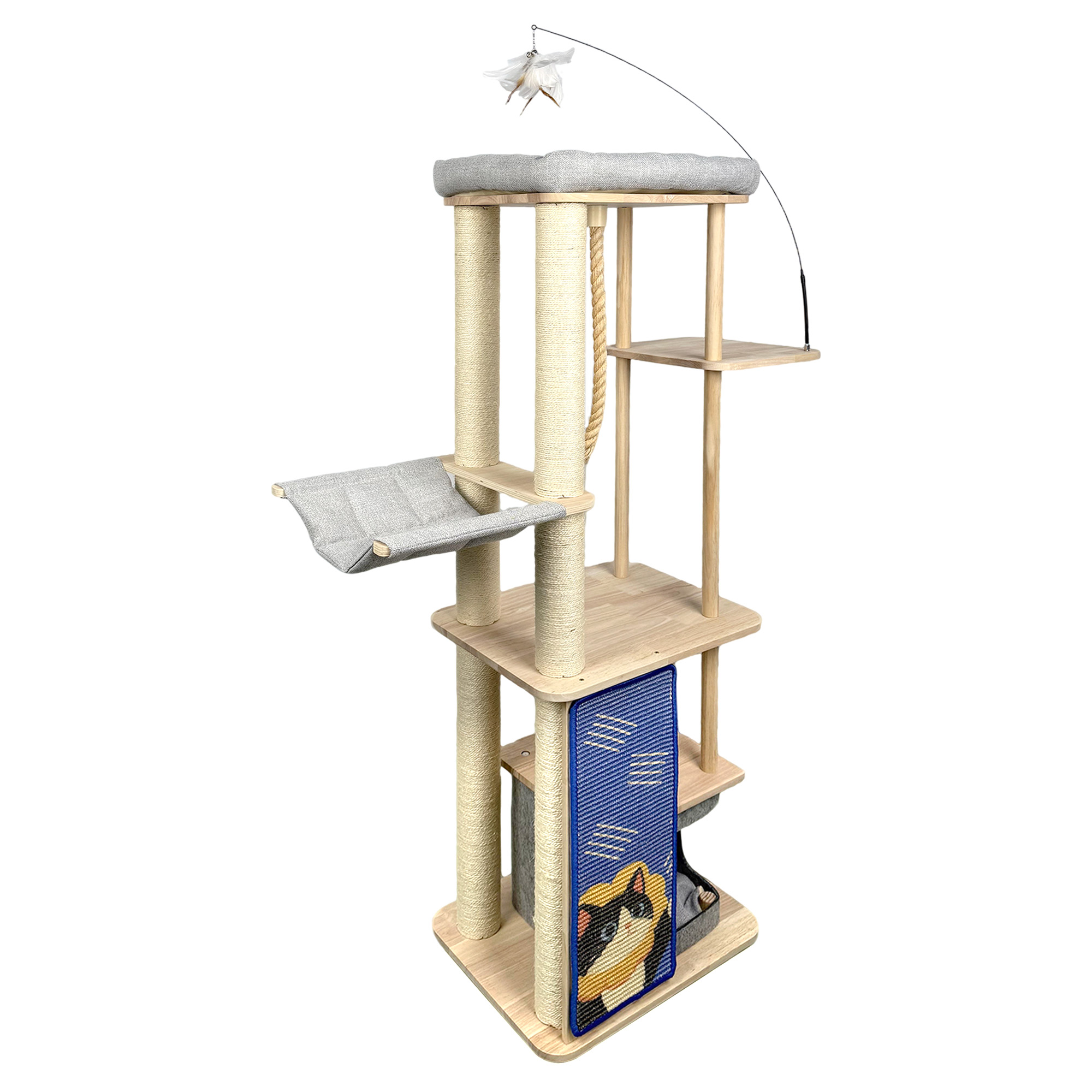 OEM ODM taxta qapalı pişik ağacı qülləsi çox pişik üçün